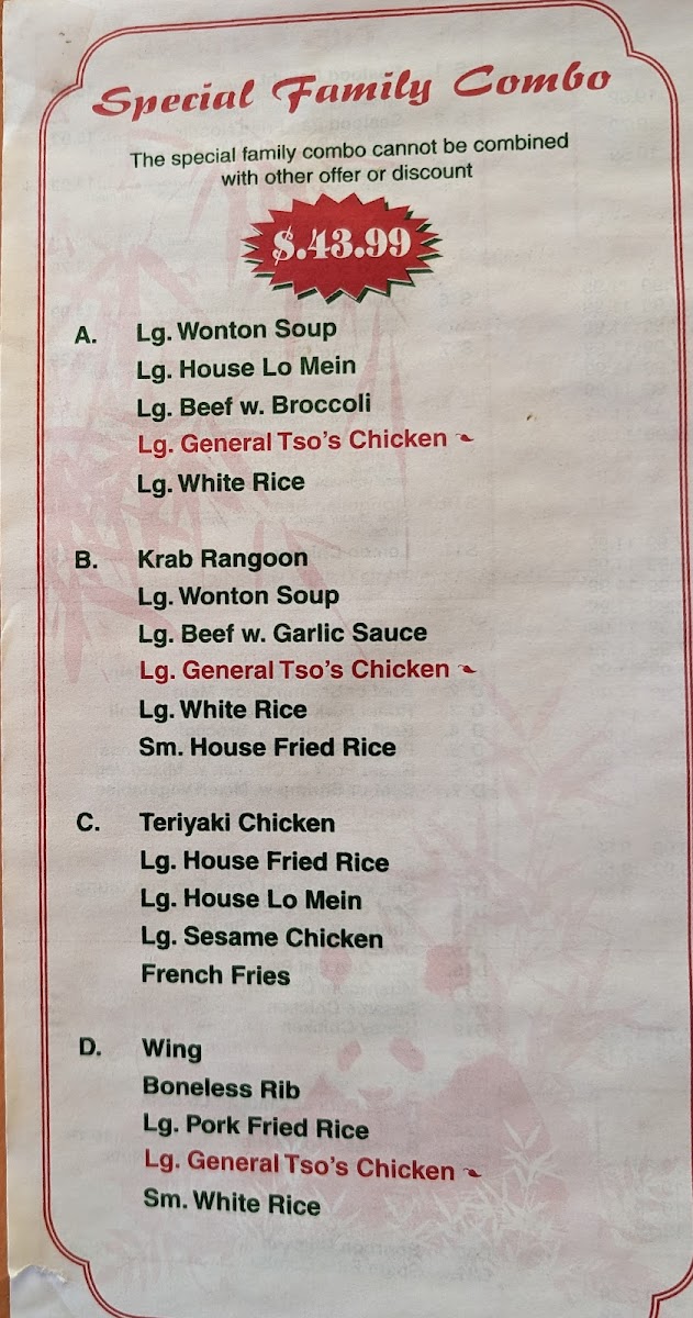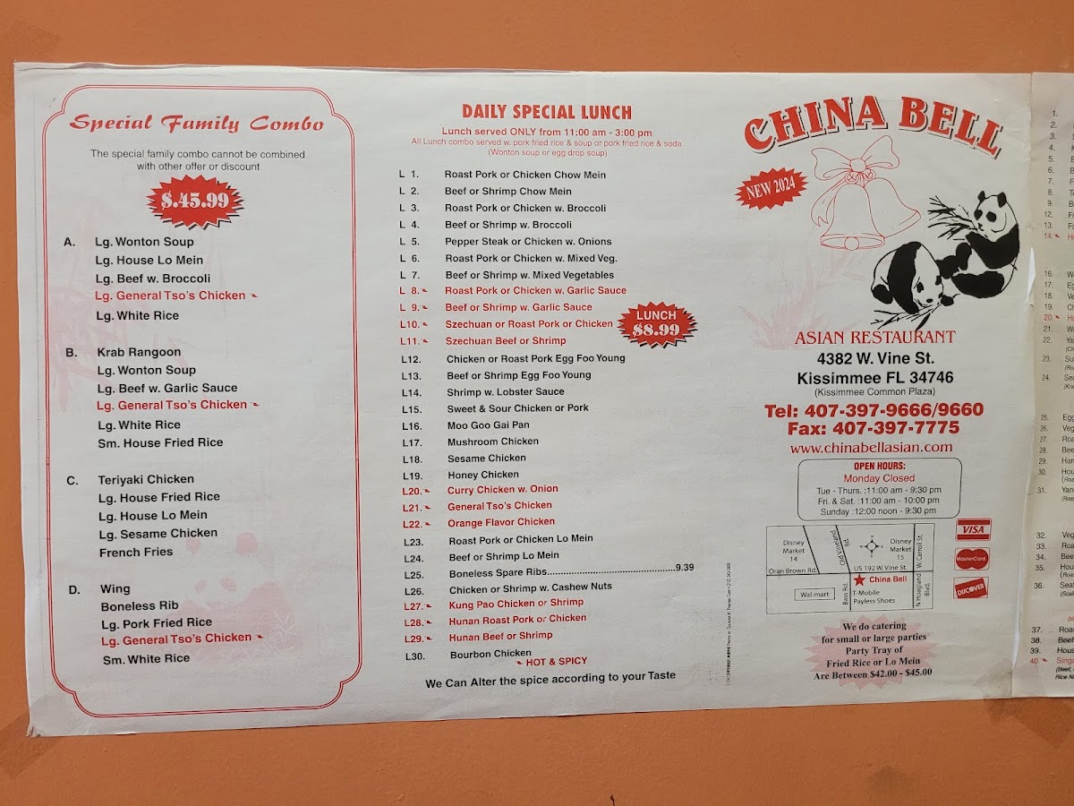 China Bell Asian Restaurant Menu
